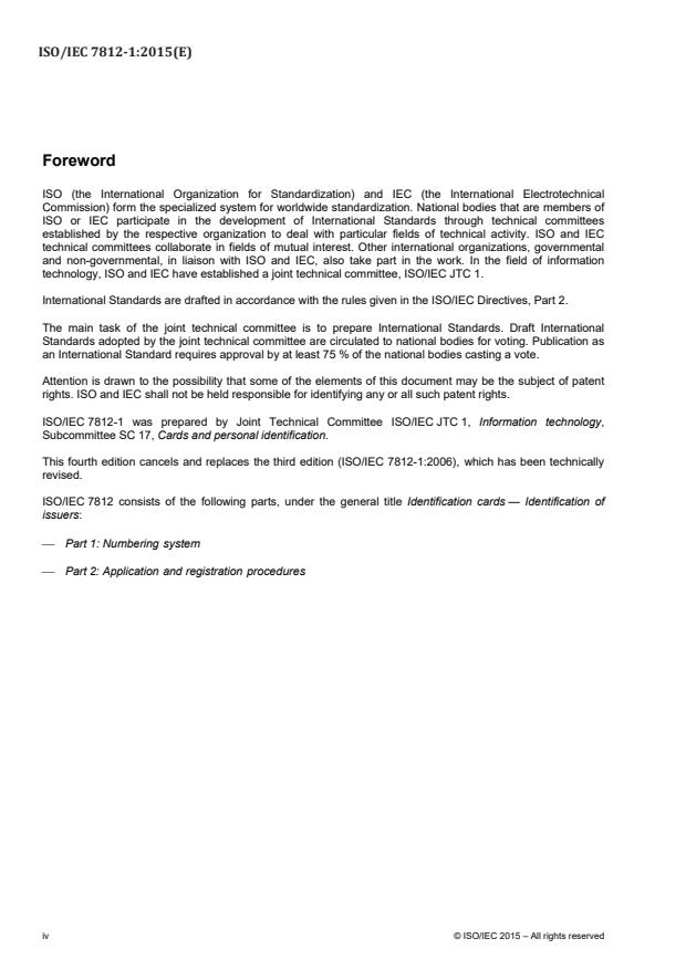 This fourth edition cancels and replaces the third edition (ISO/IEC 7812-1:2006), which has been technically