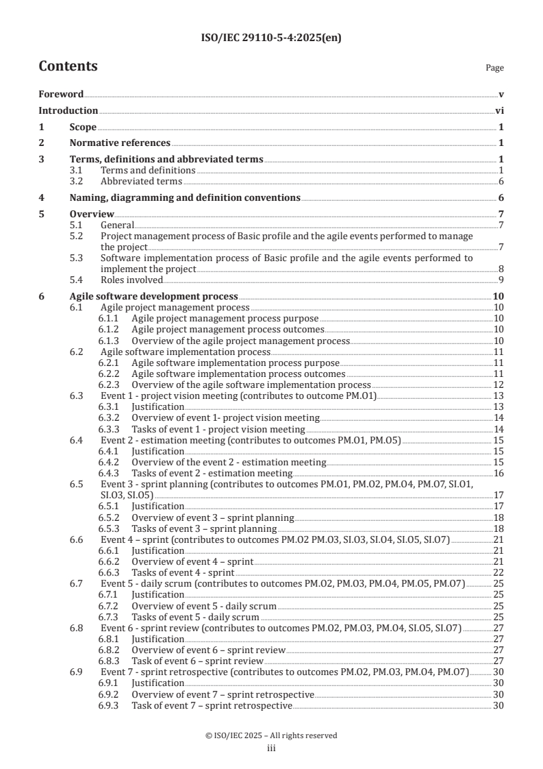 ISO/IEC 29110-5-4:2025 is a standard published by the International Organization for Standardization (ISO). Its full title is "Systems and software engineering - Life cycle profiles for very small entities (VSEs) - Part 5-4: Agile software development guidelines". This standard covers: This document provides guidelines for very small entities (VSEs) that want to reinforce their agile environment to develop software using an agile approach with practices of the ISO/IEC 29110 series. This document is applicable to VSEs that do not develop business- or safety-critical products.