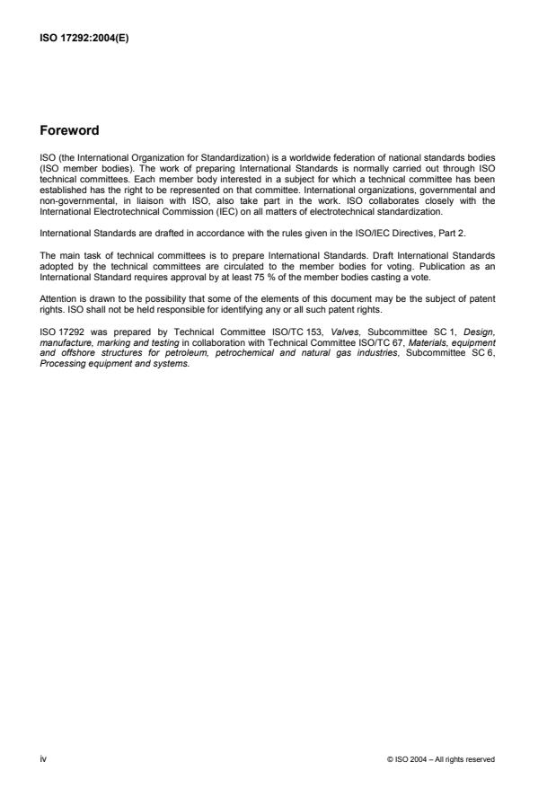 ISO 17292:2004 - Metal ball valves for petroleum, petrochemical and allied industries