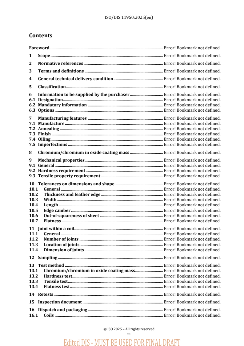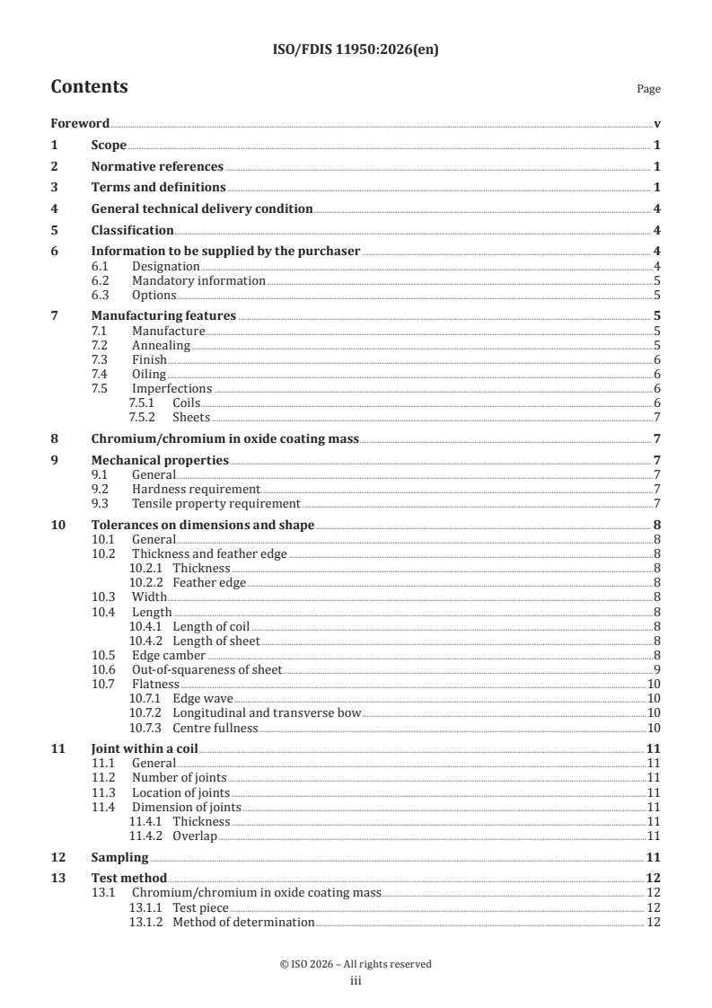 REDLINE ISO/FDIS 11950 - Cold-reduced tinmill products — Electrolytic chromium/chromium oxide-coated steel Released:14. 01. 2026