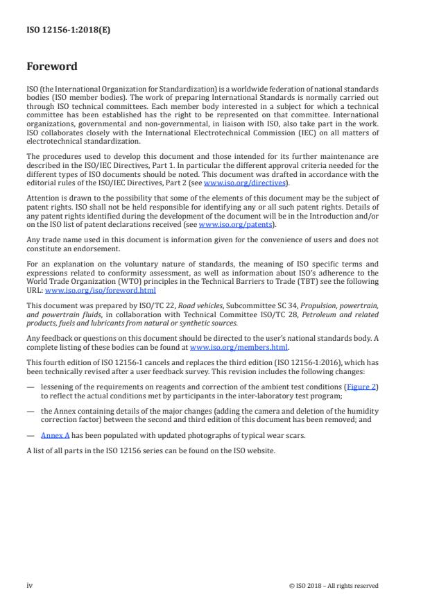 ISO 12156-1:2018 is a standard published by the International Organization for Standardization (ISO). Its full title is "Diesel fuel — Assessment of lubricity using the high-frequency reciprocating rig (HFRR) — Part 1: Test method". This standard covers: This document specifies a test method using the high-frequency reciprocating rig (HFRR), for assessing the lubricating property of diesel fuels, including those fuels which could contain a lubricity-enhancing additive. It defines two methods for measurement of the wear scar; Method "A" — Digital camera, and Method "B" — Visual observation. This test method applies to fuels used in diesel engines. NOTE It is not known if this test method will predict the performance of all additive/fuel combinations, including paraffinic fuels for which no additional correlation testing has been performed. Nevertheless, no data has been presented to suggest that such fuels are not within scope.
