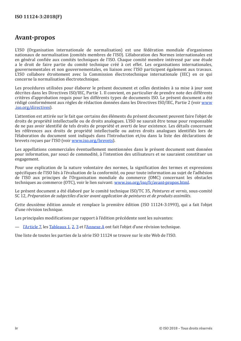 Cette deuxième édition annule et remplace la première édition (ISO 11124-3:1993), qui a fait l’objet