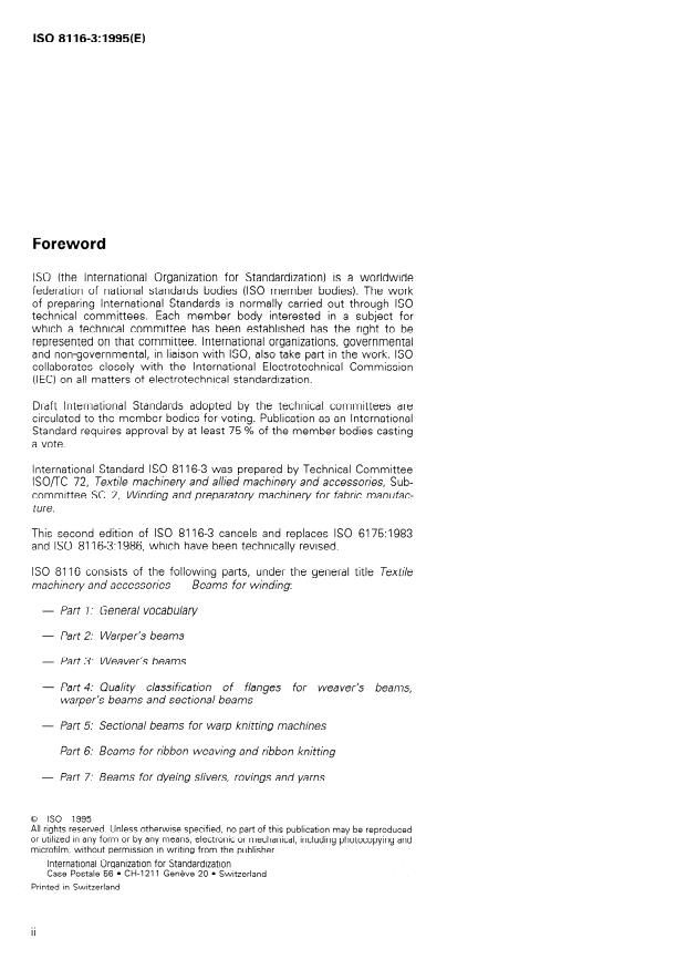 ISO 8116-3:2008 - Textile machinery and accessories — Beams for winding — Part 3: Weaver's beams - Effective Date