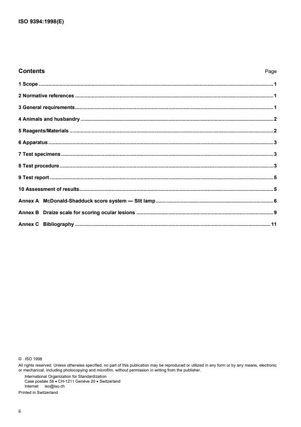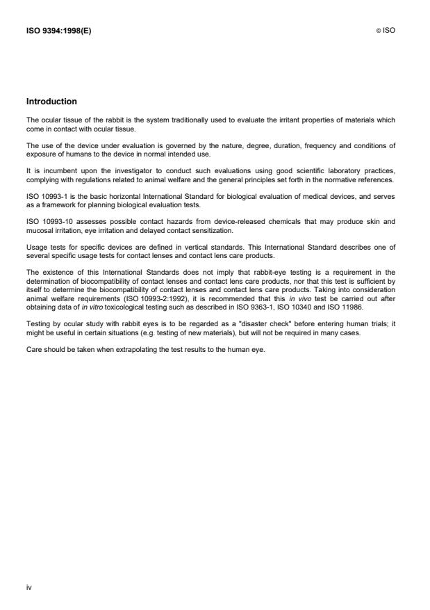 ISO 9394:1998 - Ophthalmic optics -- Contact lenses and contact lens care products -- Determination of biocompatibility by ocular study using rabbit eyes