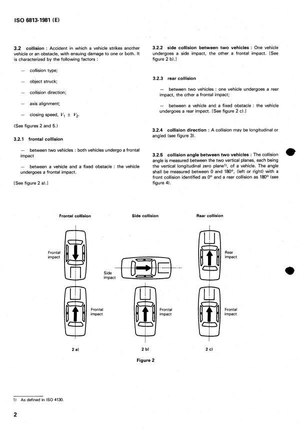 ISO 6813:1981 is a standard published by the International Organization for Standardization (ISO). Its full title is "Road vehicles — Collisions — Terminology". This standard covers: Road vehicles — Collisions — Terminology