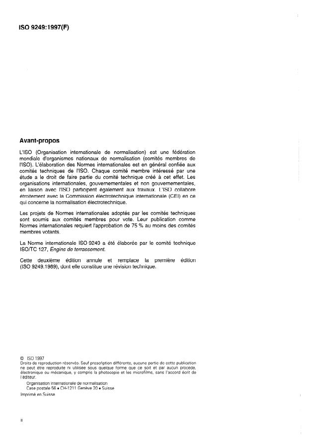 ISO 9249:1997 is a standard published by the International Organization for Standardization (ISO). Its full title is "Earth-moving machinery — Engine test code — Net power". This standard covers: Earth-moving machinery — Engine test code — Net power