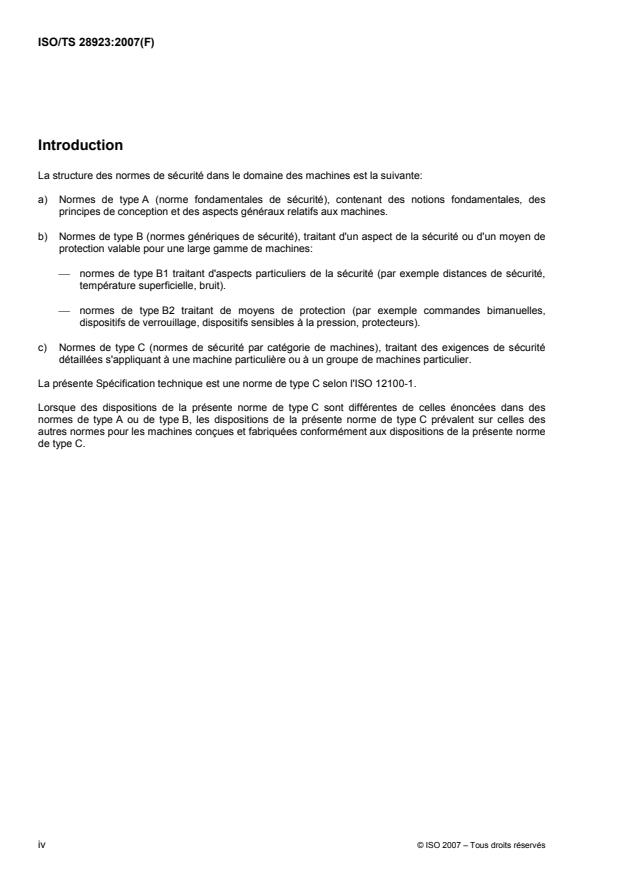 La présente Spécification technique est une norme de type C selon l'ISO 12100-1.