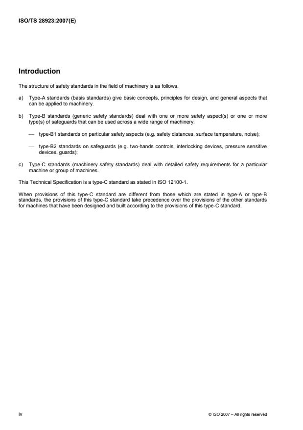 This Technical Specification is a type-C standard as stated in ISO 12100-1.