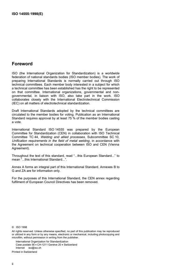 ISO 14555:1998 - Welding -- Arc stud welding of metallic materials