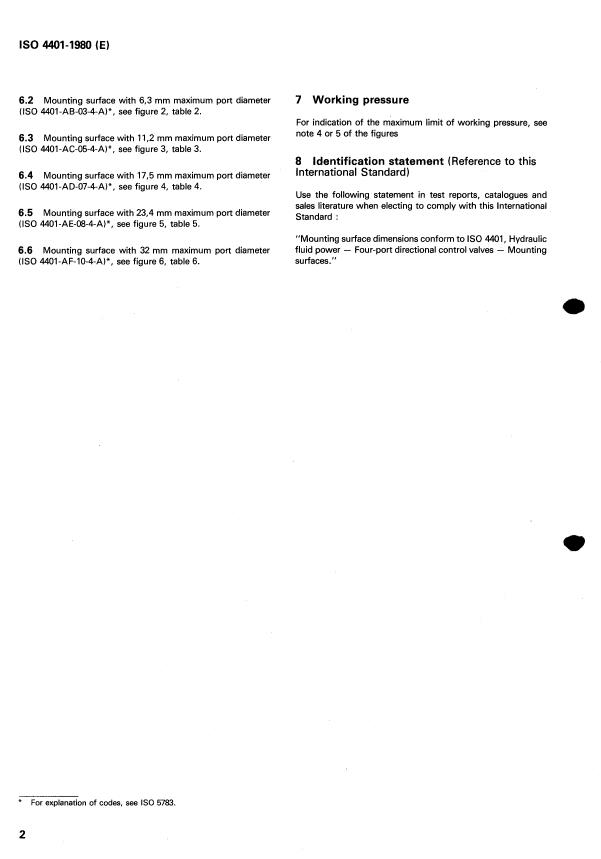 ISO 4401:1980 - Hydraulic fluid power -- Four-port directional control valves -- Mounting surfaces