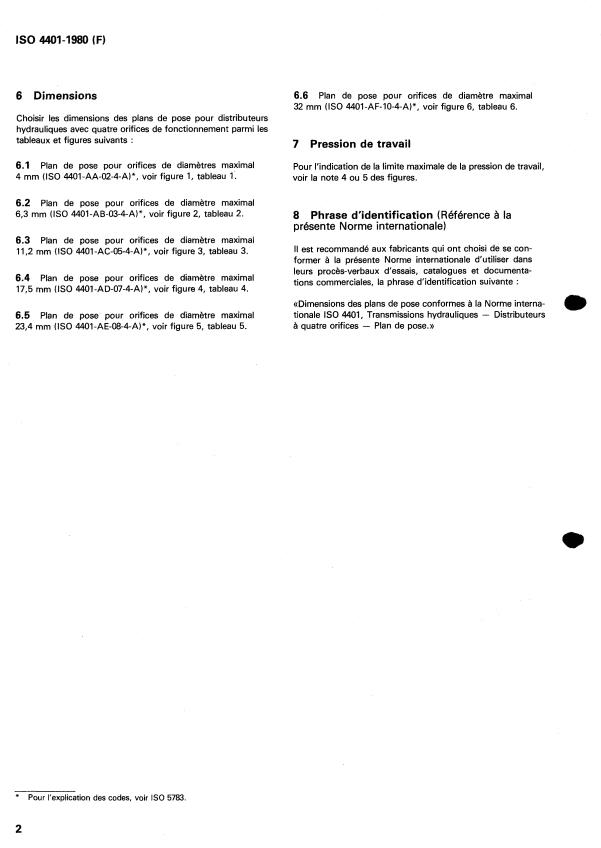 tionale IS0 4401, Transmissions hydrauliques - Distributeurs