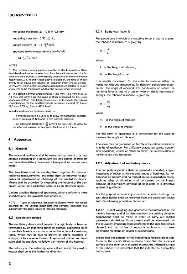 ISO 4662:1986 is a standard published by the International Organization for Standardization (ISO). Its full title is "Rubber — Determination of rebound resilience of vulcanizates". This standard covers: Describes a method for a narrow range of impact strain and strain rate, by means of any form of impacting and measuring apparatus conforming to the requirements described in the standard. Method is applicable to vulcanized rubbers, the hardness of which, at the test temperature, lies betwen 30 and 85 IRHD. Annes A refers to non-standard test pieces and contains a table for recommended fundamental parameters. -Constitutes a minor revision of the first edition (ISO 4662-1978).
