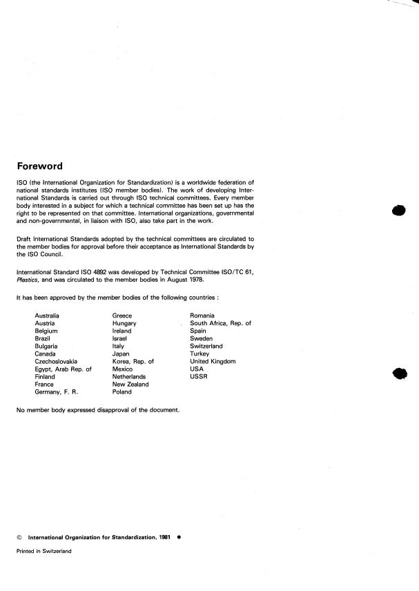 Plastics, and was circulated to the member bodies in August 1978.
