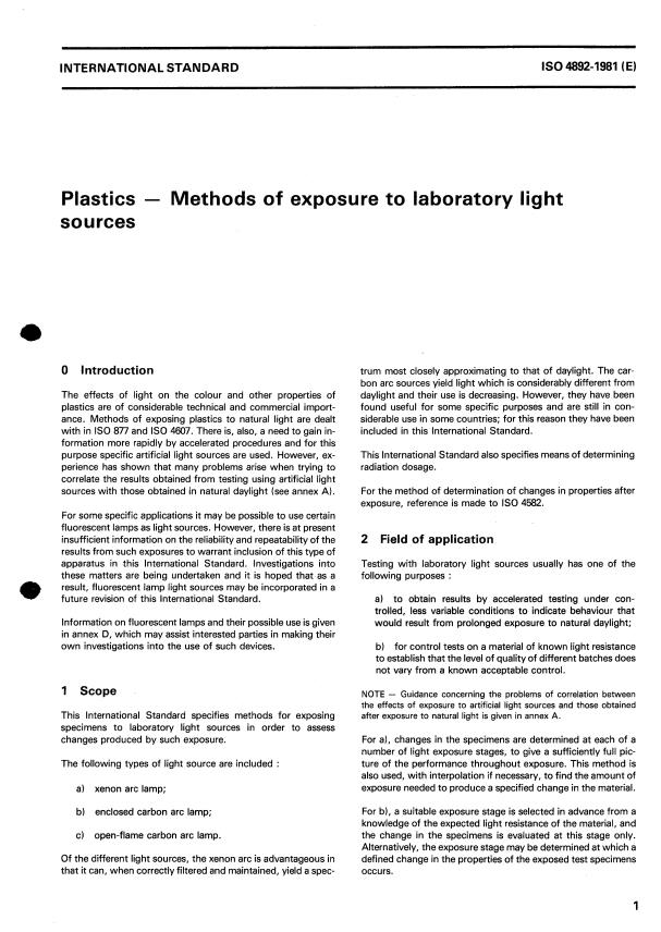 ISO 4892:1981 - Plastics -- Methods of exposure to laboratory light sources