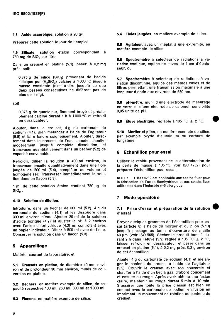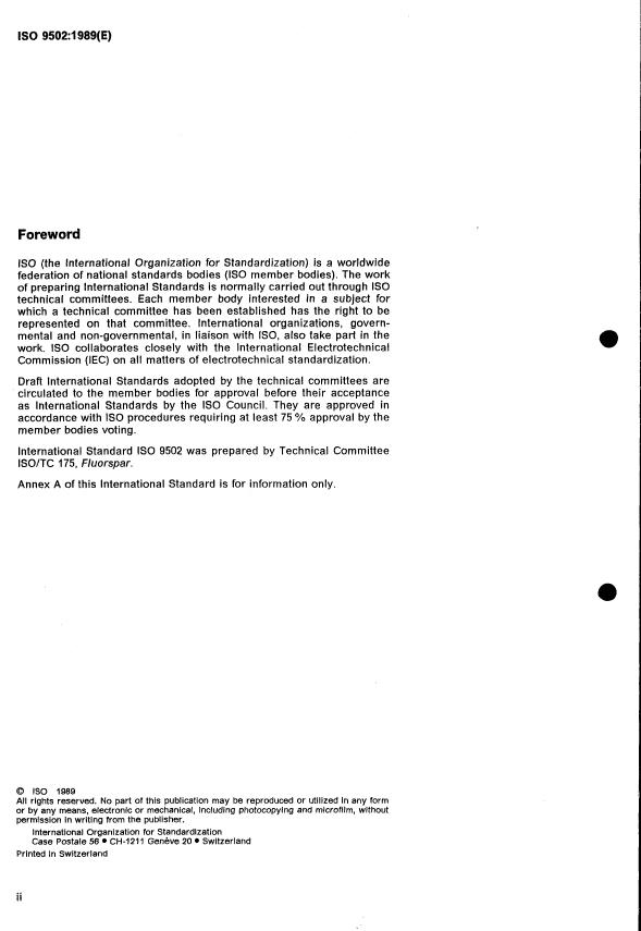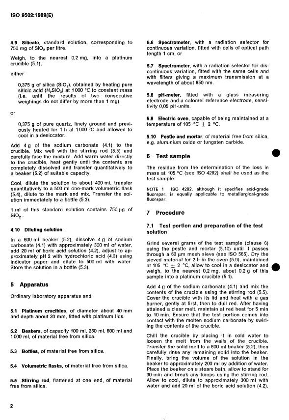 ISO 9502:1989 - Metallurgical-grade fluorspar — Determination of silica content — Reduced-molybdosilicate spectrometric method Released:12/7/1989