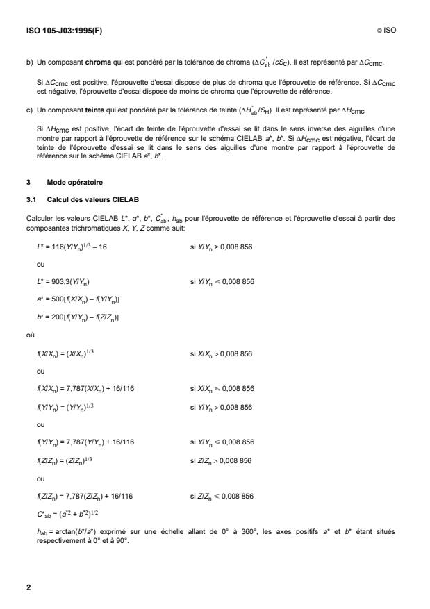 Calculer les valeurs CIELAB L*, a*, b*, C , h pour l'éprouvette de référence et l'éprouvette d'essai à partir des