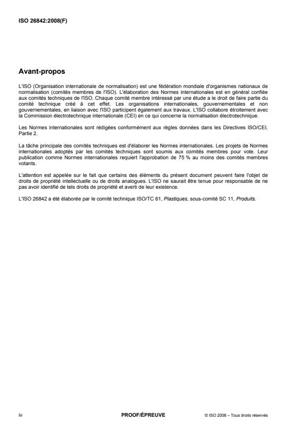 L'ISO 26842 a été élaborée par le comité technique ISO/TC 61, Plastiques, sous-comité SC 11, Produits.