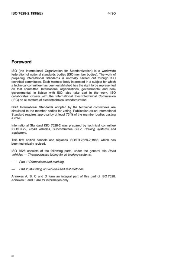ISO 7628-2:1998 is a standard published by the International Organization for Standardization (ISO). Its full title is "Road vehicles — Thermoplastics tubing for air braking systems — Part 2: Mounting on vehicle and test methods". This standard covers: Road vehicles — Thermoplastics tubing for air braking systems — Part 2: Mounting on vehicle and test methods