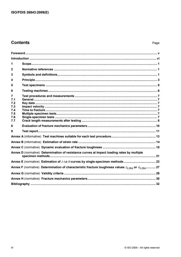 ISO/FDIS 26843 is a draft published by the International Organization for Standardization (ISO). Its full title is "Metallic materials — Measurement of fracture toughness of steels at impact loading rates using precracked Charpy specimens". This standard covers: ISO 26845:2009 specifies requirements for performing and evaluating instrumented precracked Charpy impact tests on steels using a fracture mechanics approach. Minimum requirements are given for measurement and recording equipment, such that similar sensitivity and comparable measurements are achieved. ISO 26845:2009 can be applied to other metallic materials by agreement. Dynamic fracture mechanics properties determined using ISO 26845:2009 are comparable to conventional large-scale fracture mechanics results when the corresponding validity criteria are met. Because of the small absolute size of the Charpy specimen, this is often not the case. Nevertheless, the values obtained can be used in research and development of materials, in quality control and service evaluation and to establish the variation of properties with test temperature under impact loading rates.