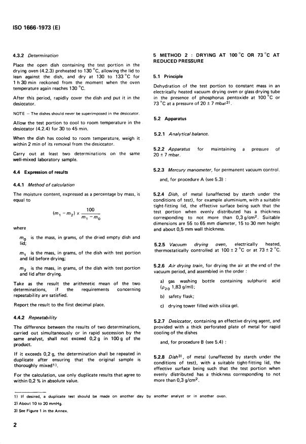 ISO 1666:1973 - Starch -- Determination of moisture content -- Oven-drying methods