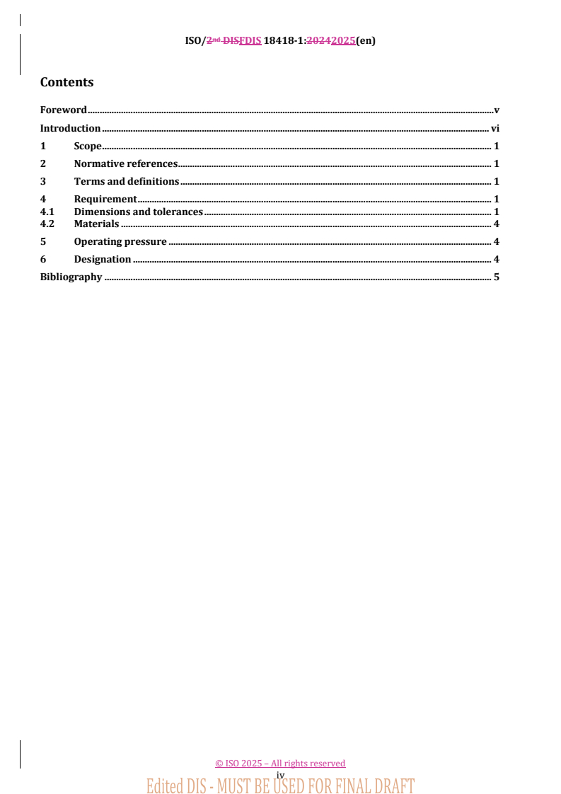 REDLINE ISO/FDIS 18418-1 - Gasoline engines — High pressure liquid fuel supply connections — Part 1: 60° concave cone connectors Released:9/24/2025