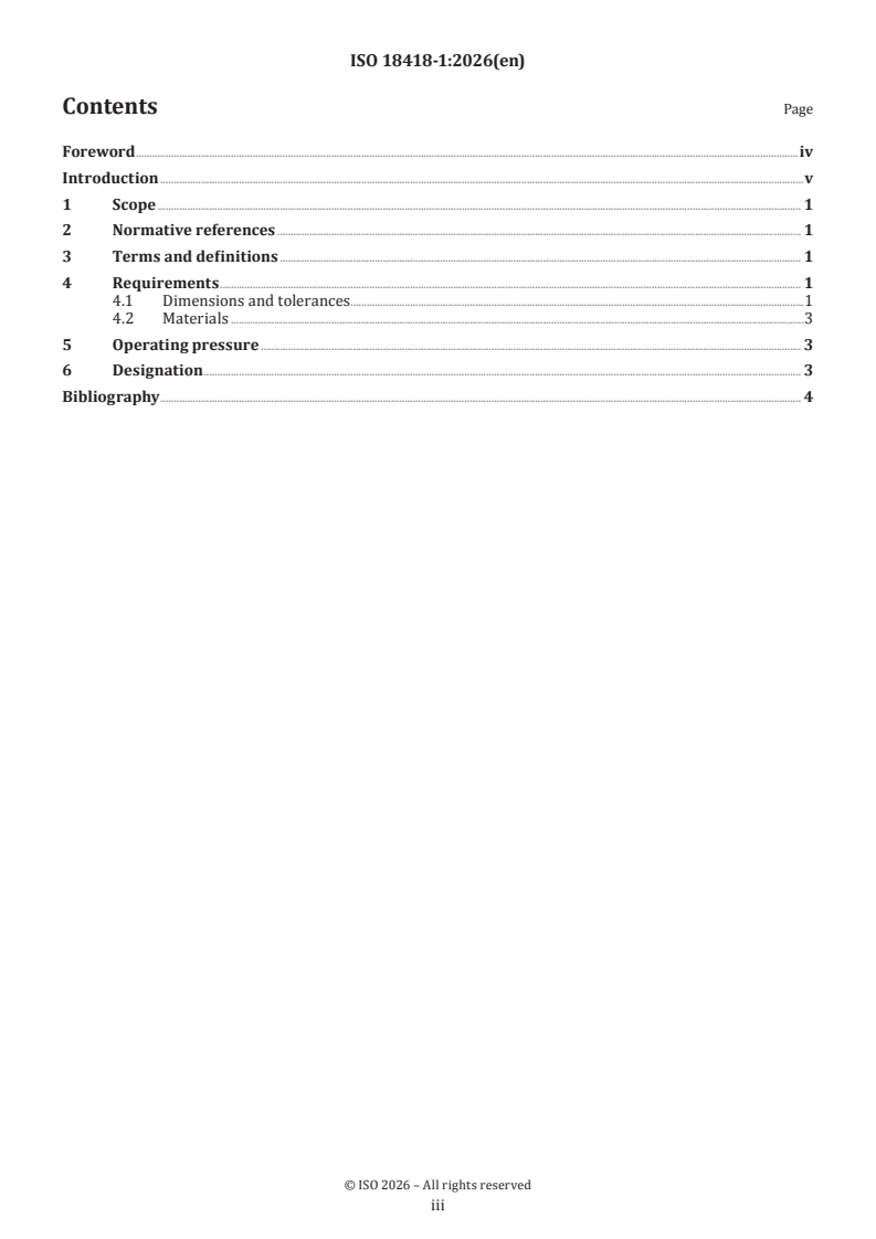ISO 18418-1:2026 is a standard published by the International Organization for Standardization (ISO). Its full title is "Gasoline engines — High pressure liquid fuel supply connections — Part 1: 60° concave cone connectors". This standard covers: This document specifies the dimensional requirements of high-pressure liquid fuel pipe end-connections for gasoline (spark ignition) engine fuel injection equipment. It is applicable to externally threaded end-connections having a 60° concave cone (see Figure 1), as well as to the pipe end assemblies of high-pressure fuel injection pipes with outside diameters of up to and including 10 mm (see Table 1).