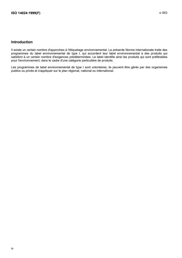 ISO 14024:1999 is a standard published by the International Organization for Standardization (ISO). Its full title is "Environmental labels and declarations — Type I environmental labelling — Principles and procedures". This standard covers: La présente Norme internationale établit les principes et les méthodes pour la mise au point de programmes d'étiquetage environnemental de type 1, comprenant le choix de catégories de produits, de critères environnementaux et des caractéristiques fonctionnelles du produit, et pour l'évaluation et la preuve de conformité. La présente Norme internationale établit également les méthodes de certification pour l'attribution du label.