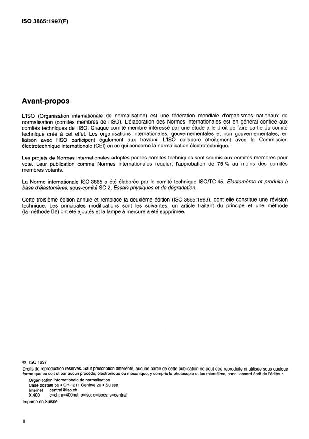 ISO 3865:1997 is a standard published by the International Organization for Standardization (ISO). Its full title is "Rubber, vulcanized or thermoplastic — Methods of test for staining in contact with organic material". This standard covers: Rubber, vulcanized or thermoplastic — Methods of test for staining in contact with organic material