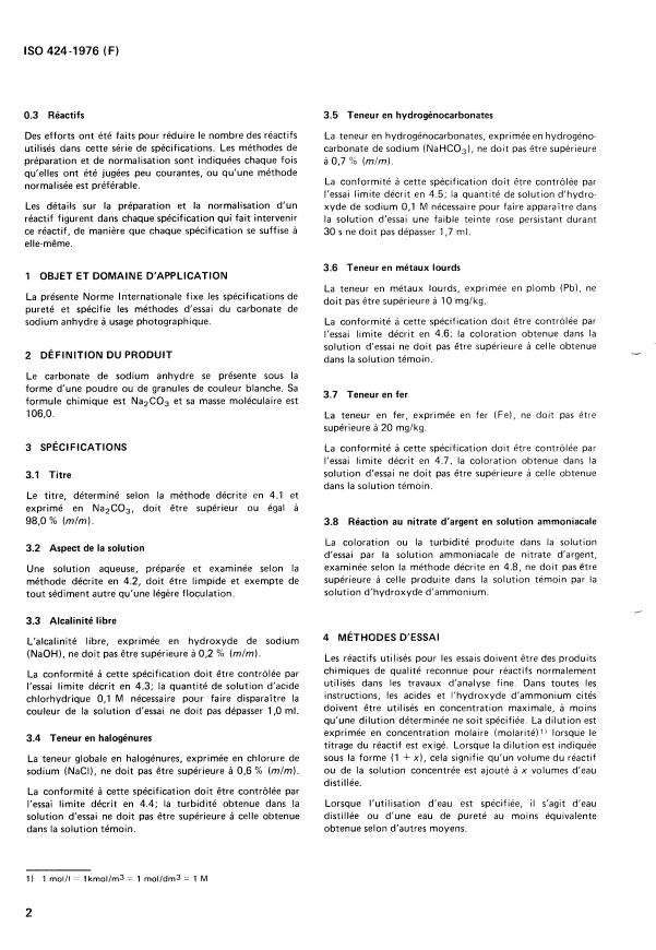 utilisés dans cette série de spécifications. Les méthodes de carbonate de sodium (NaHCO,), ne doit pas &tre supérieure