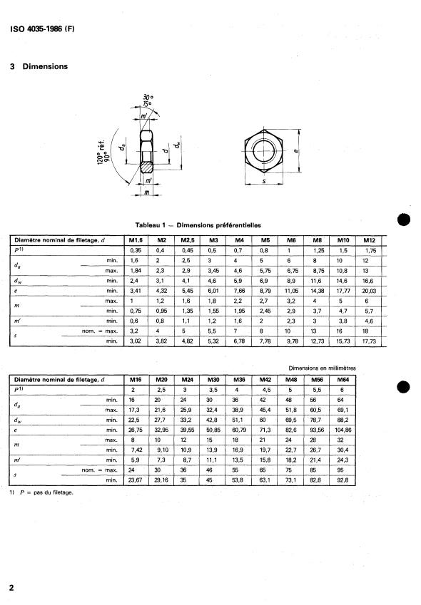 Descripteurs : élément de fixation, écrou, écrou hexagonal, spécification, dimension, désignation.