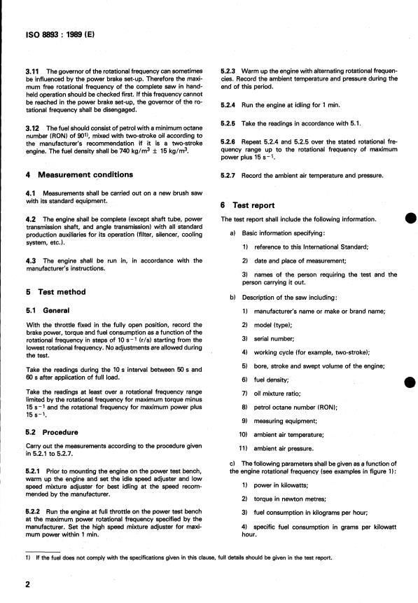 ISO 8893:1989 - Forestry machinery — Portable brush-saws — Engine performance and fuel consumption Released:10/19/1989