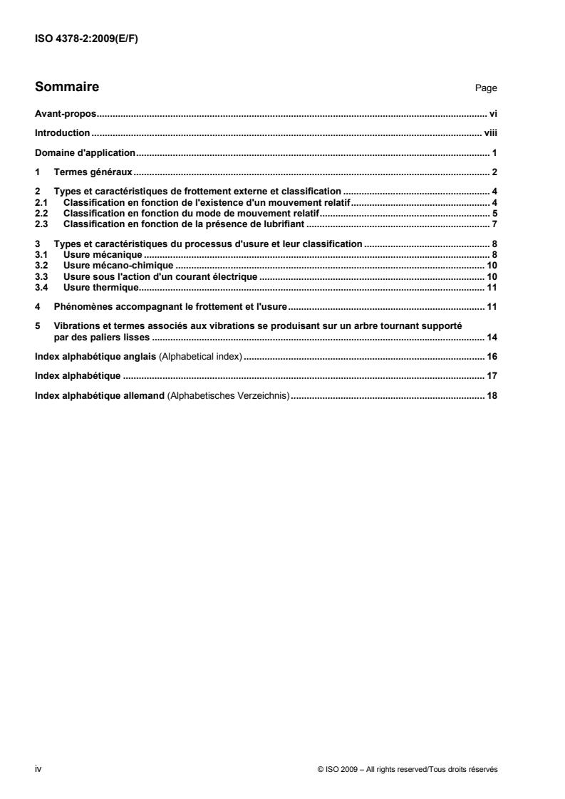 L'ISO 4378-2:2009 donne les termes les plus couramment utilisés en matière de frottement et d'usure des paliers lisses, ainsi que leur définition et leur classification. Les formes abrégées données pour certains termes peuvent être employées dans les cas où elles ne créent aucune ambiguïté possible quant à leur interprétation. Les termes suffisamment explicites par eux-mêmes ne sont pas définis. En complément des termes utilisés anglais et français, deux des trois langues officielles de l'ISO (anglais, français et russe), l'ISO 4378-2:2009 donne les termes équivalents en allemand; ces termes sont publiés sous la responsabilité du comité membre allemand (DIN), et sont donnés uniquement pour information. Seuls les termes et définitions donnés dans les langues officielles peuvent être considérés comme étant des termes et définitions de l'ISO.