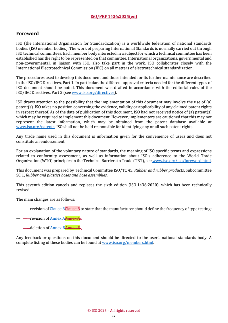 REDLINE ISO/PRF 1436 - Rubber hoses and hose assemblies — Wire-braid-reinforced hydraulic types for oil-based or water-based fluids — Specification Released:12. 11. 2025
