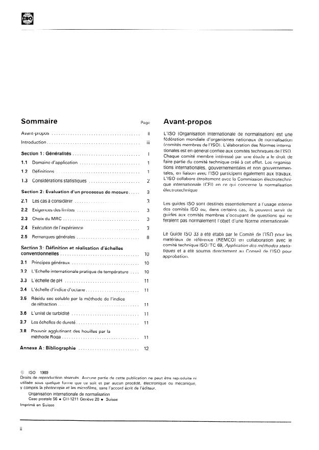 ISO Guide 33:1989 is a guide published by the International Organization for Standardization (ISO). Its full title is "Uses of certified reference materials". This standard covers: Uses of certified reference materials