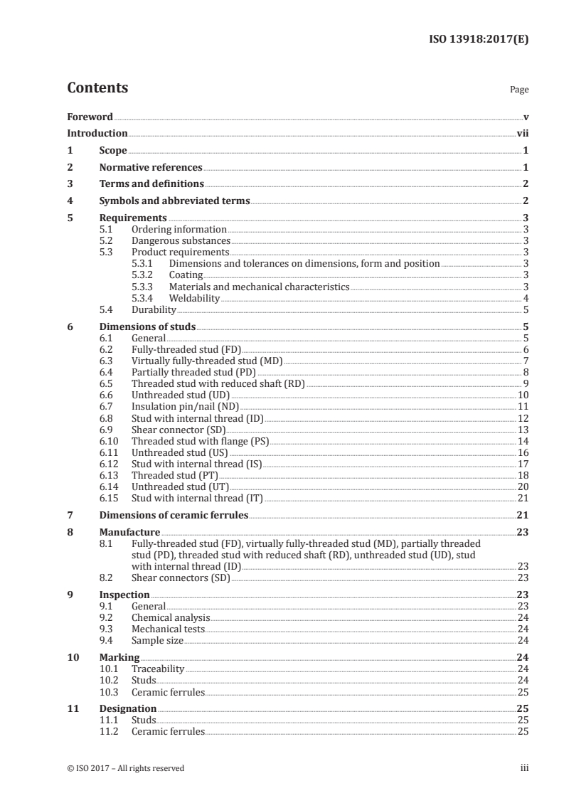 Keywords: ISO 13918, stud welding, arc stud welding, ceramic ferrules, studs, weldability, dimensions, mechanical properties, shear connector, drawn‑arc welding.