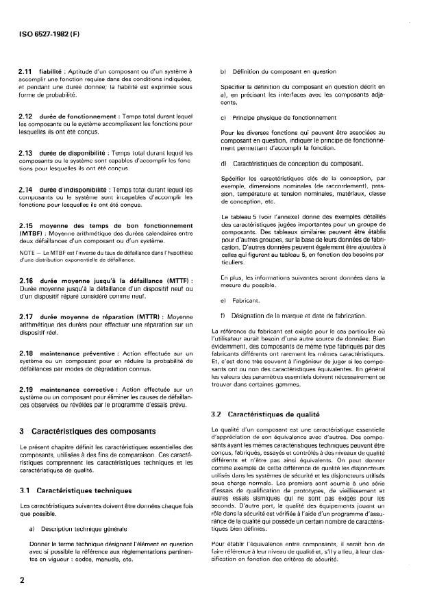 ISO 6527:1982 is a standard published by the International Organization for Standardization (ISO). Its full title is "Nuclear power plants — Reliability data exchange — General guidelines". This standard covers: Identifies the typical parameters of a component that permit it to be characterized unequivocally and to allow the corresponding reliability data to be associated with those of other components having equivalent typical parameters. Parameters refer to technical characteristics including the physical principle of operation and quality level and to actual operating conditions and maintenance and test intervals. Data may be represented both in a historical and in a statistical form.