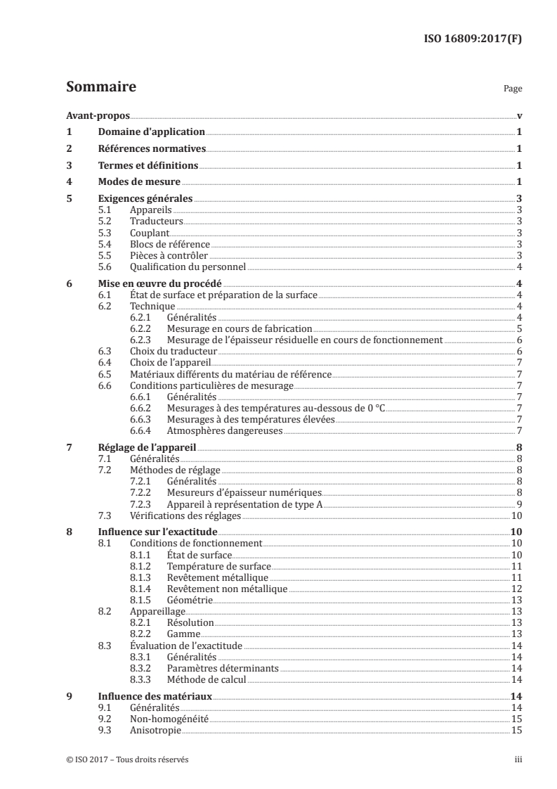 ISO 16809:2017 is a standard published by the International Organization for Standardization (ISO). Its full title is "Non-destructive testing — Ultrasonic thickness measurement". This standard covers: ISO 16809:2017 specifies the principles for ultrasonic thickness measurement of metallic and non-metallic materials by direct contact, based on measurement of time of flight of ultrasonic pulses only.