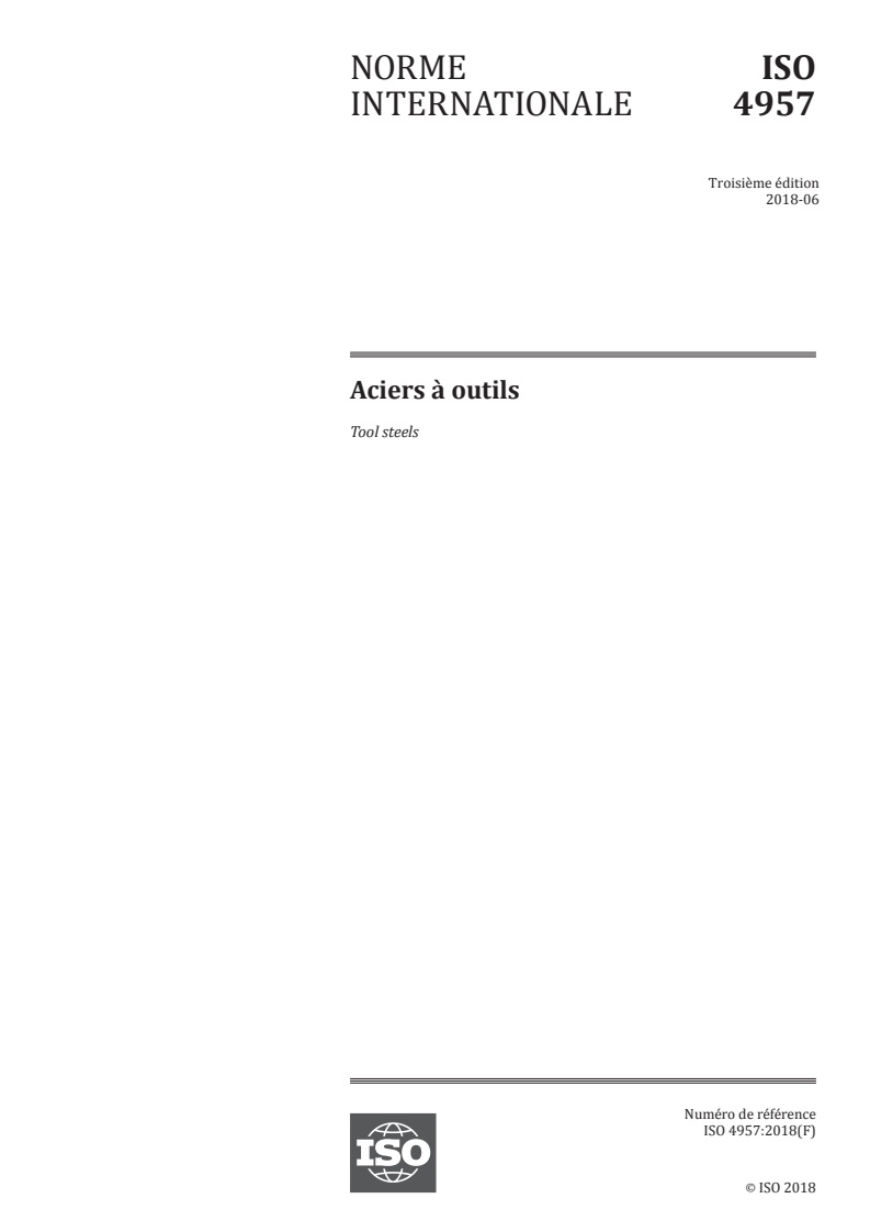 ISO 4957:2018 - Aciers à outils Released:6/22/2018