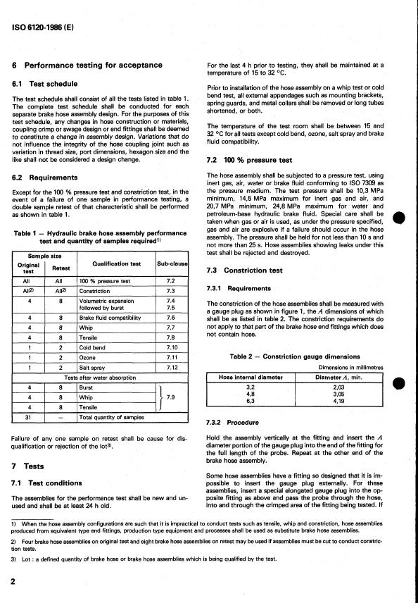ISO 6120:1986 - Road vehicles — Brake hose assemblies for hydraulic braking systems used with a petroleum-base hydraulic fluid Released:12/4/1986