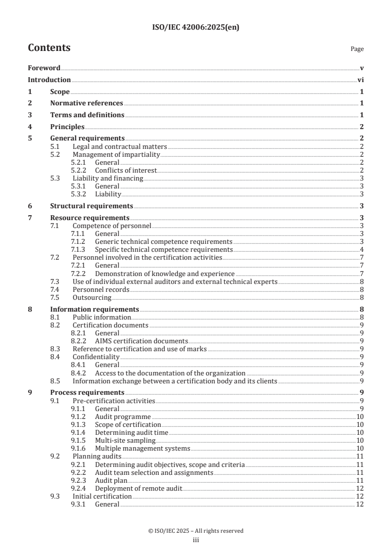 - Accreditation bodies and peer assessors using ISO/IEC 42006 as criteria for accreditation or peer assessment.