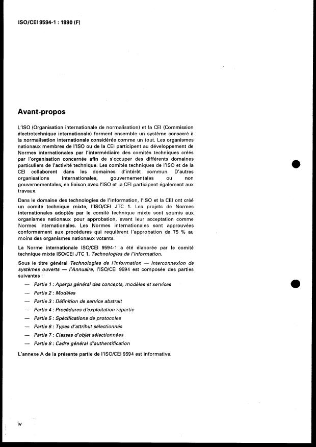 ISO/IEC 9594-1:1990 is a standard published by the International Organization for Standardization (ISO). Its full title is "Information technology — Open Systems Interconnection — The Directory — Part 1: Overview of concepts, models and services". This standard covers: Information technology — Open Systems Interconnection — The Directory — Part 1: Overview of concepts, models and services