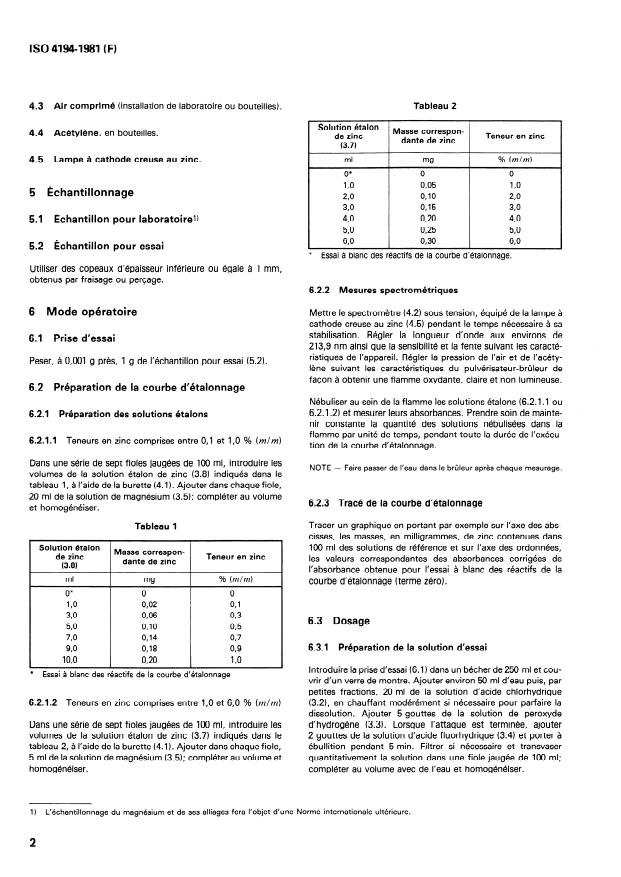 ISO 4194:1981 - Alliages de magnésium -- Dosage du zinc -- Méthode par spectrométrie d'absorption atomique dans la flamme