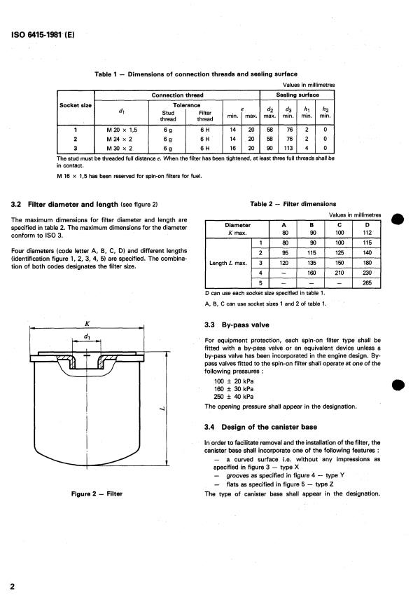 ISO 6415:1981 - Internal combustion engines — Spin-on filters for lubricating oil — Dimensions Released:2/1/1981
