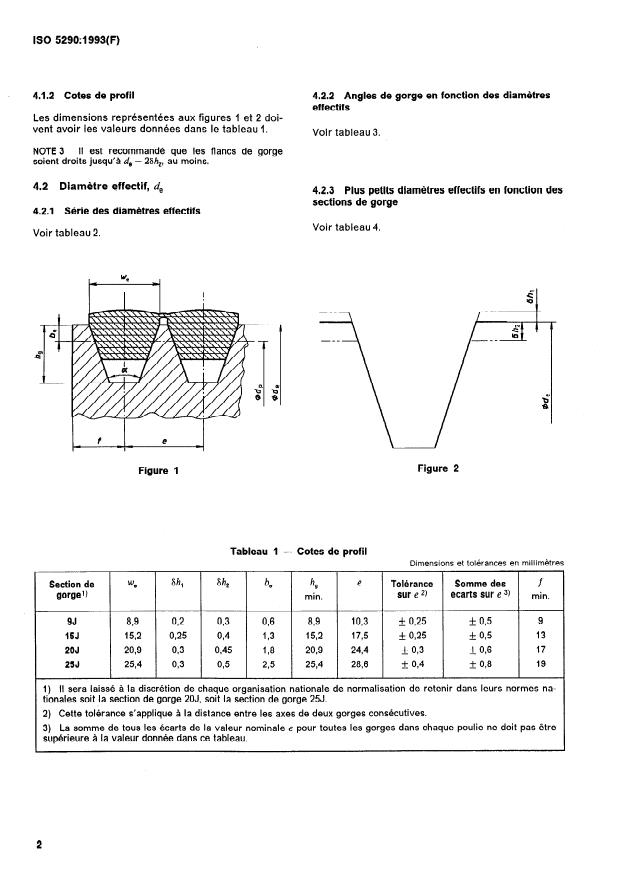 2) Cette tolérance s’applique à la distance entre les axes de deux gorges consécutives.