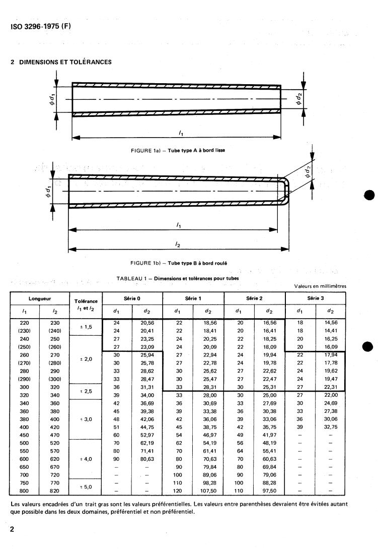 TABLE 1 - Dimensions and tolerances for tubes