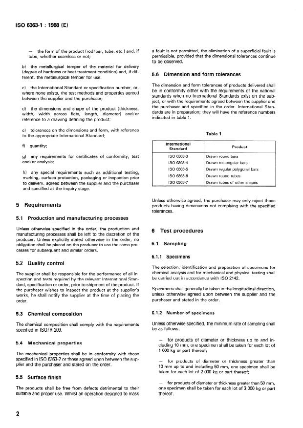 ISO 6363-1:1988 - Wrought aluminium and aluminium alloy cold-drawn rods/bars and tubes
