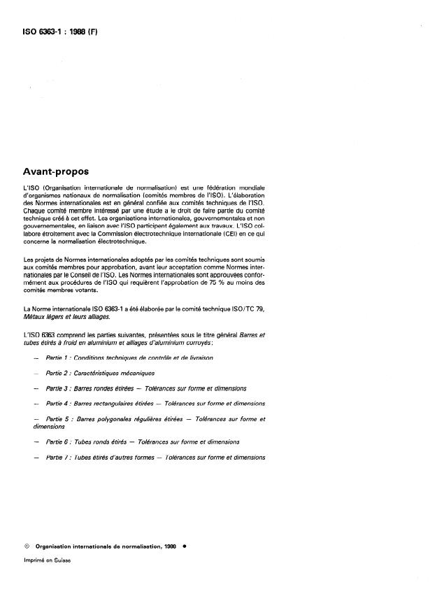 ISO 6363-1:1988 - Barres et tubes étirés a froid en aluminium et alliages d'aluminium corroyés