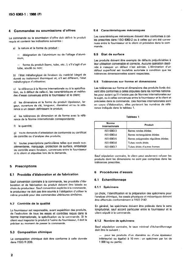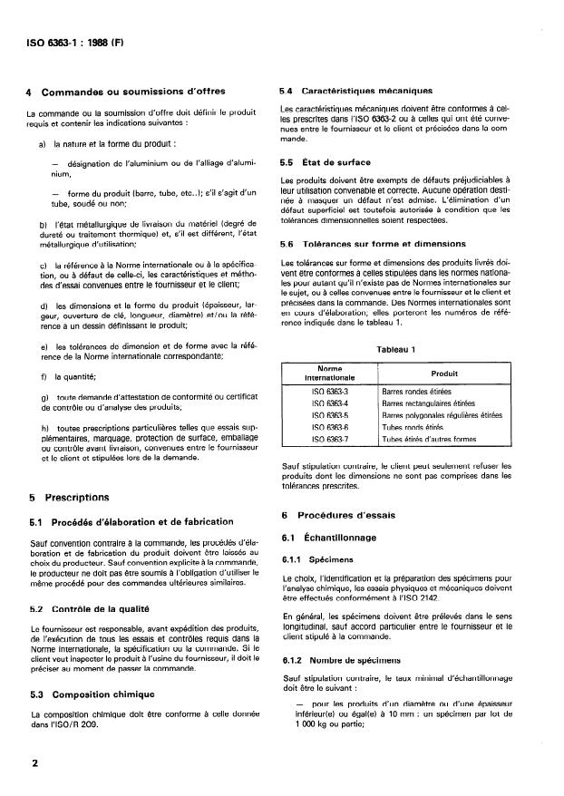1 Domaine d’application ISO 6363-2 : - 1 ) Barres et tubes étirtk à froid en aluminium et
