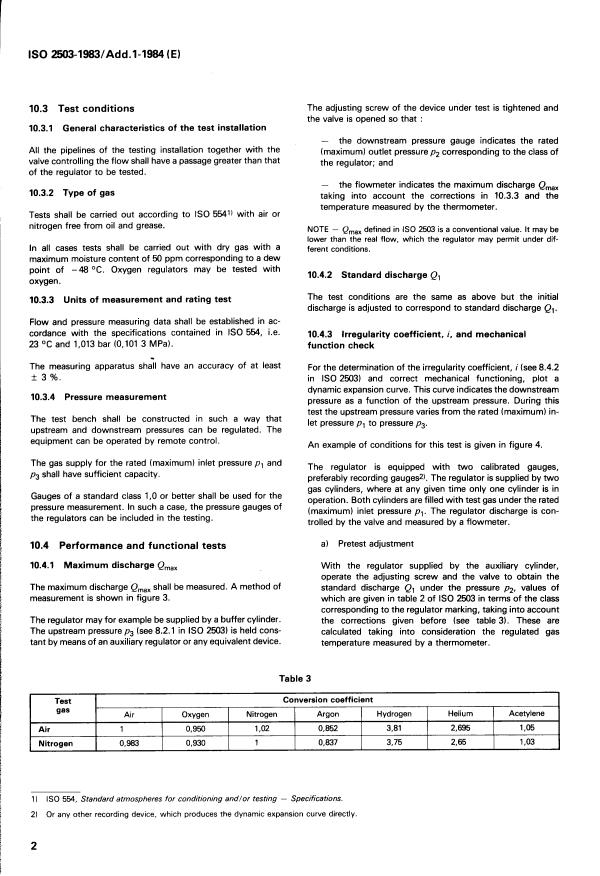 Conformity to the requirements of IS0 2503 can be confirmed The test shall be carried out with new regulators which are in