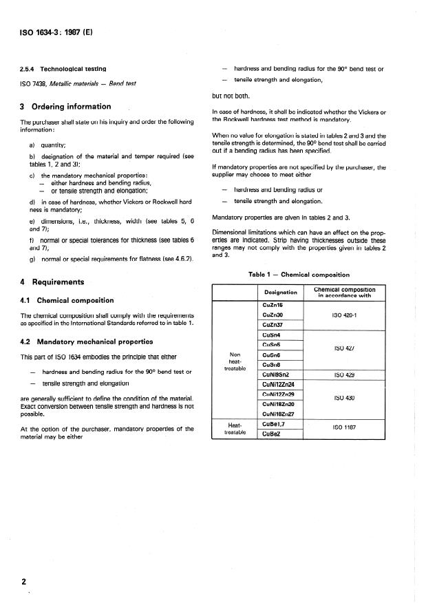 ISO 1634-3:1987 - Wrought copper and copper alloy plate, sheet and strip